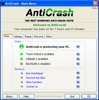 Avouons tout de même qu’AntiCrash est bien utile puisqu’il entre en scène dès qu'un bug se produit sans qu’on lui demande. La fonction AutoRepair vous permet de scanner l’intégralité de votre PC (RAM, ports divers, système Windows, disques amovibles, drivers, etc.) pour y déceler d’éventuelles causes de ralentissement. En cas de pépin, il conserve une trace des documents perdus.